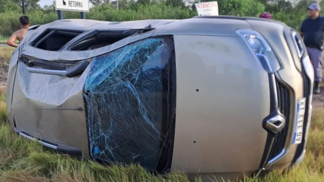 Un auto con cinco pasajeros volcó tras esquivar un bache sobre la Ruta 16