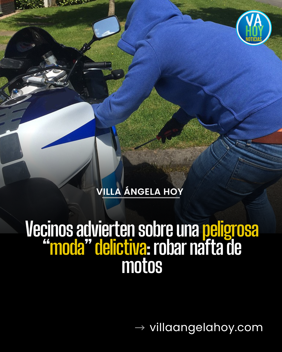 En distintos barrios de Villa Ángela se está instalando una preocupante modalidad delictiva: el robo de combustible de motocicletas.