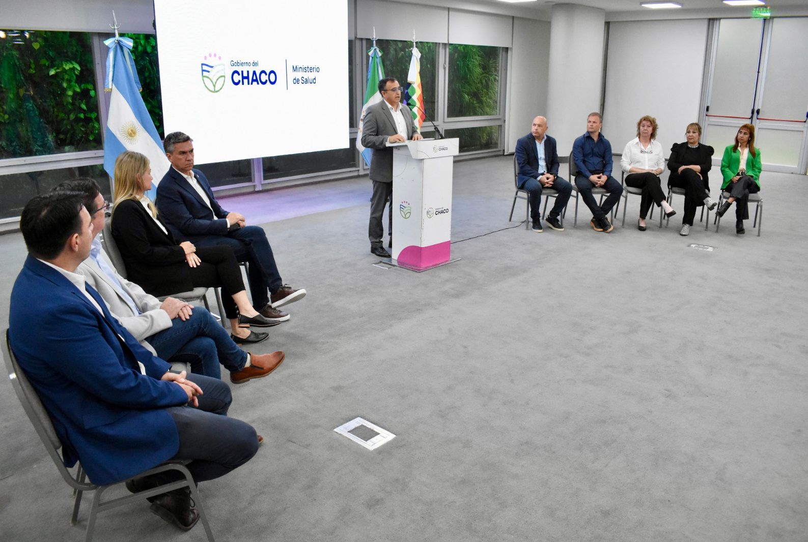 El gobernador Leandro Zdero, junto al ministro de Salud Sergio Rodríguez y la secretaria general de la Gobernación Carolina Meiriño, anunciaron este jueves la instrumentación de un programa de pases a planta y regularización del personal del Ministerio de Salud Pública, en el marco del programa de normalización del empleo público que impulsa el Gobierno Provincial.