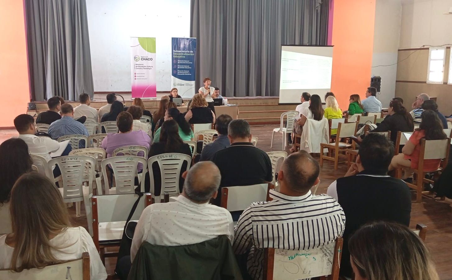 La jornada se desarrolló ayer en el salón de la EES N° 66 de Resistencia y contó con la presencia de la subsecretaria de Descentralización Educativa, Marta Fassano; la directora general de Gestión Educativa, Mirta Candia; la directora general de Inclusión Educativa, Elba Altamiranda; la directora de la Unidad de Recursos Humanos, Zulma Lezcano; el director de Legal, Edgardo Piceda, y los directores regionales, entre otros funcionarios.
