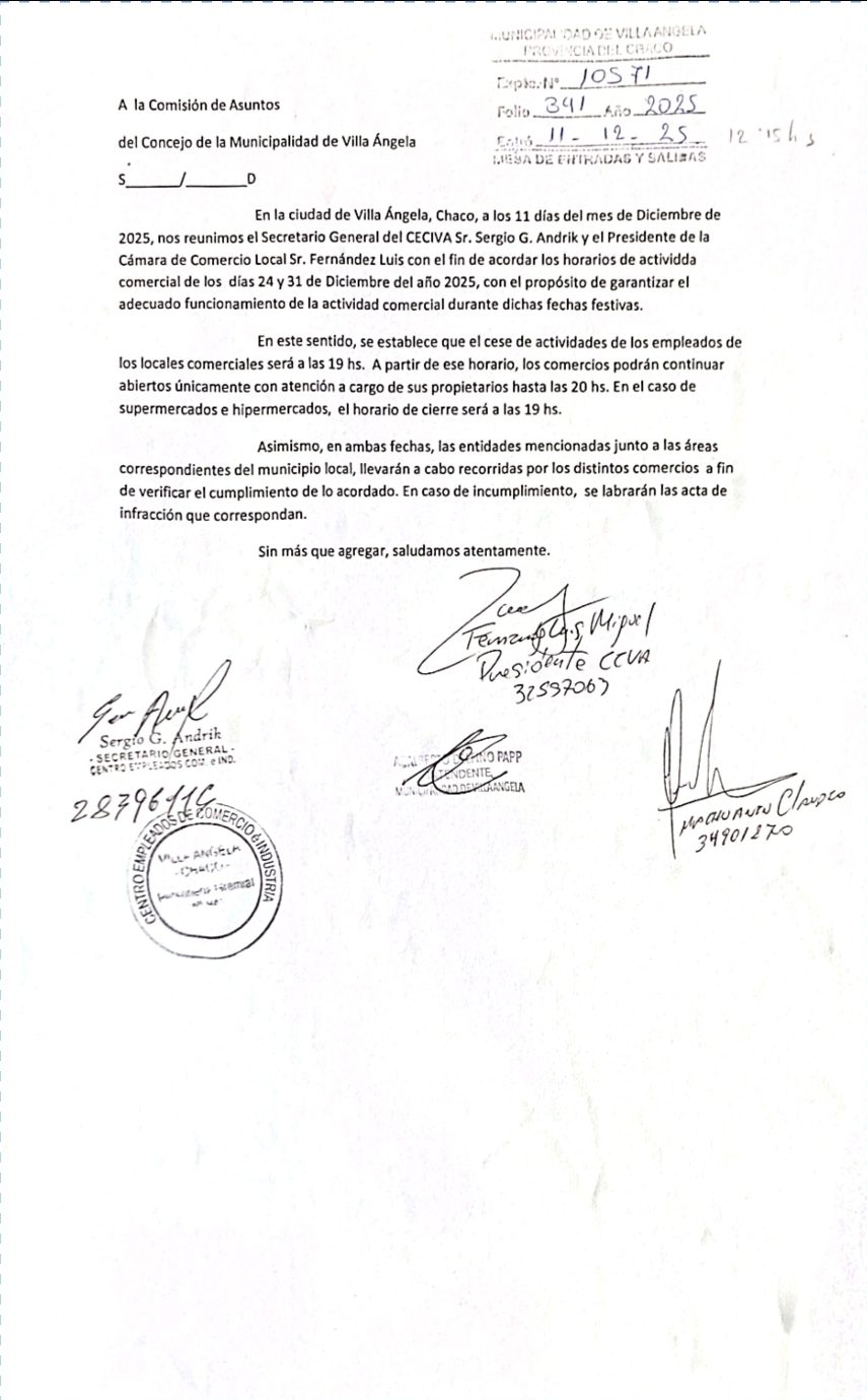 Lejos de desentenderse de la situación laboral de los empleados de comercio, el Concejo Deliberante planteó una alternativa: solicitar que la Cámara de Comercio, el Centro de Empleados de Comercio y el Ejecutivo Municipal formalicen por escrito un convenio, dejando constancia de un acuerdo consensuado entre empleadores y trabajadores respecto al horario de cierre en esas fechas especiales.
