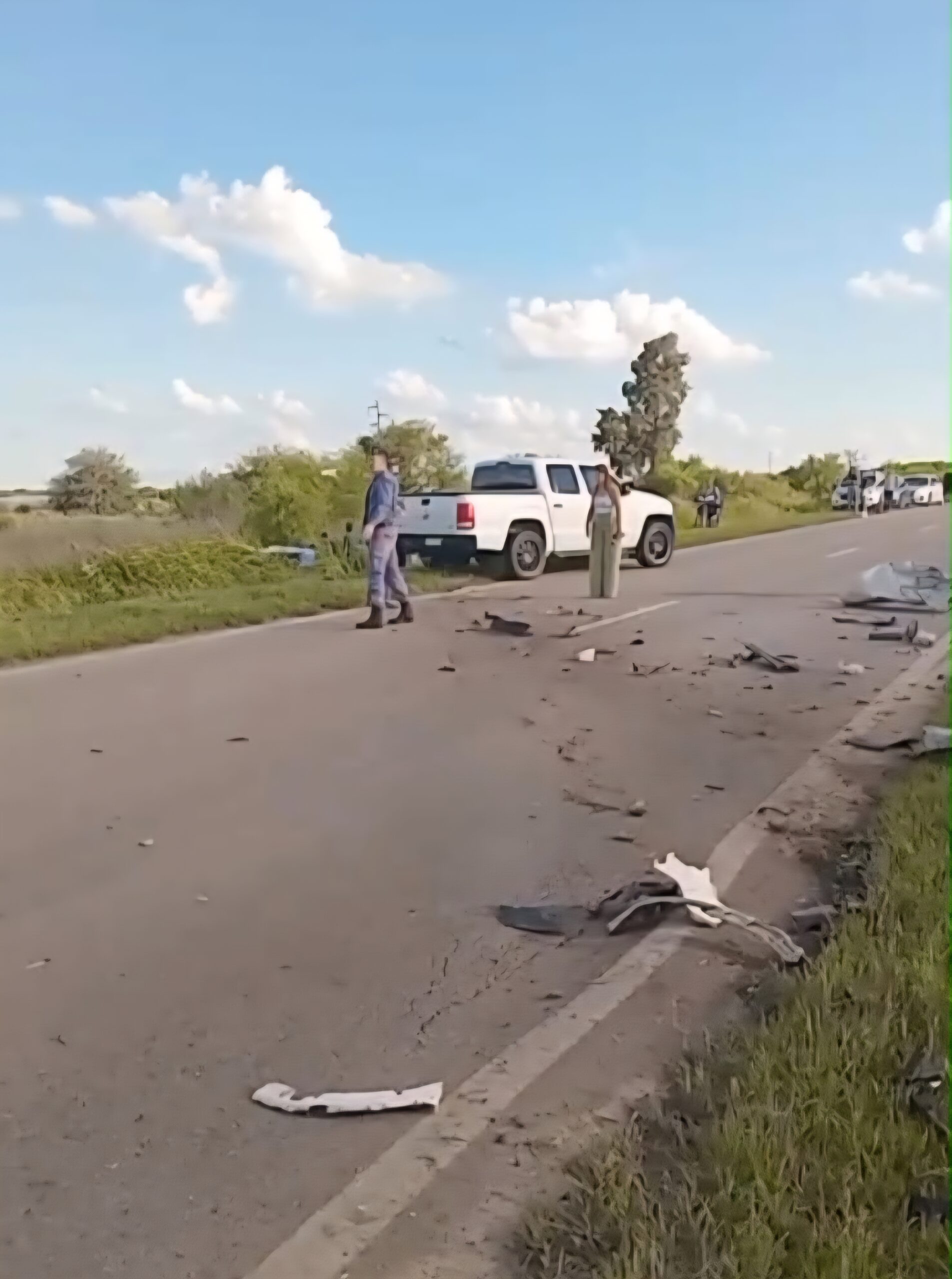 Según información policial, el hecho fue protagonizado por una camioneta Toyota Hilux blanca, dominio AC626WL, que se encontraba estacionada sobre la banquina derecha de la ruta, y un automóvil Volkswagen Nivus blanco, dominio AG776BI, por causas que se tratan de establecer.