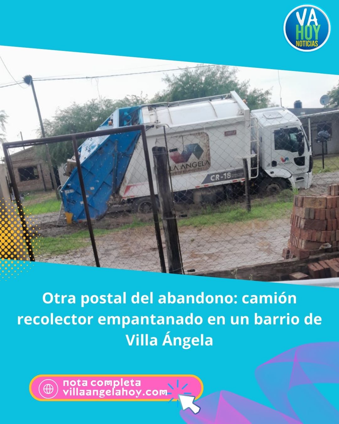 Un camión recolector de residuos perteneciente al municipio, a cargo de Titi Papp, quedó empantanado en una de las calles de un barrio de Villa Ángela, evidenciando nuevamente el mal estado de las calles de tierra tras las «últimas lluvias».