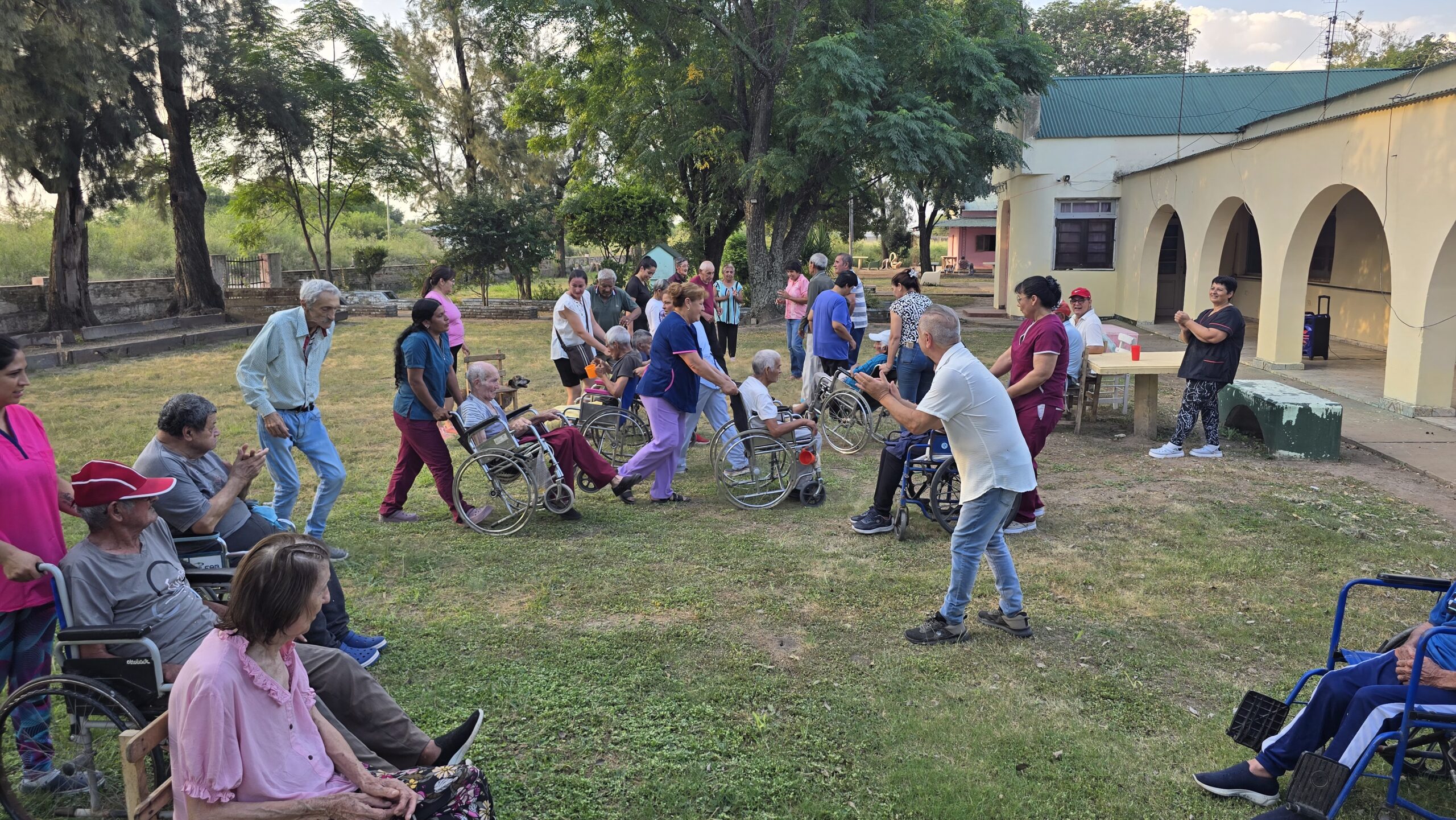 La visita se dio en el marco de una actividad recreativa organizada por la institución: un taller de danza folklórica destinado a adultos mayores con discapacidad motriz, una propuesta que apunta a la verdadera inclusión y al bienestar integral de los residentes.