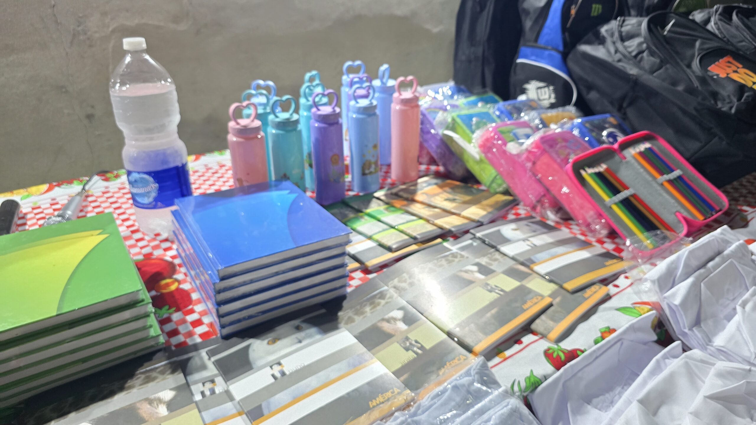 Cada kit incluye zapatillas, pantalón o calza, remera, guardapolvo, mochila, cartuchera, útiles completos y hasta botellita de agua, con el objetivo de que los niños y niñas puedan comenzar las clases con todos los elementos necesarios.