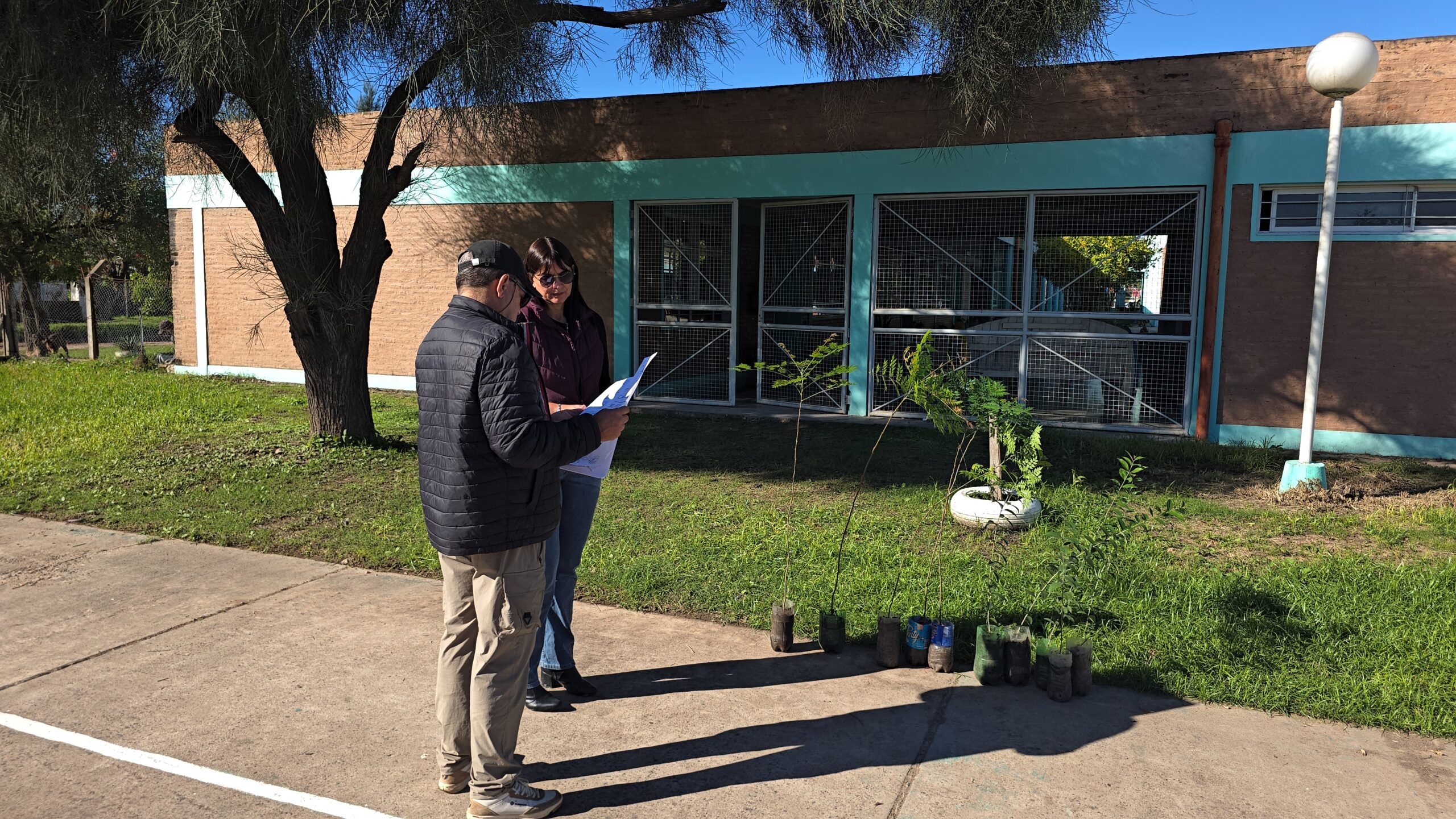 Además de la obra en el playón deportivo, el municipio entregó plantines para acompañar el proyecto de reforestación y embellecimiento del predio escolar, una iniciativa que involucra activamente a estudiantes y docentes.
